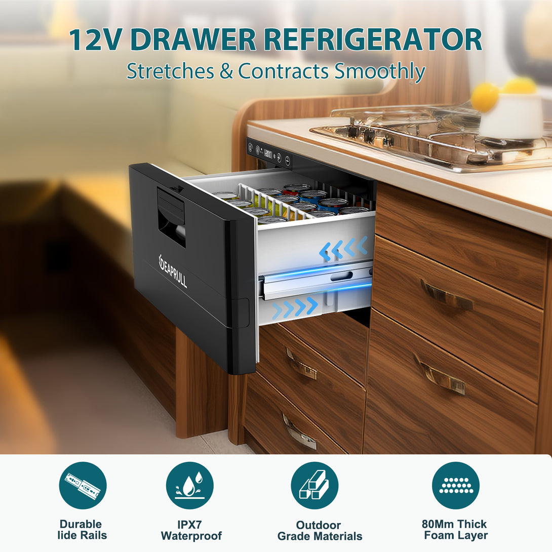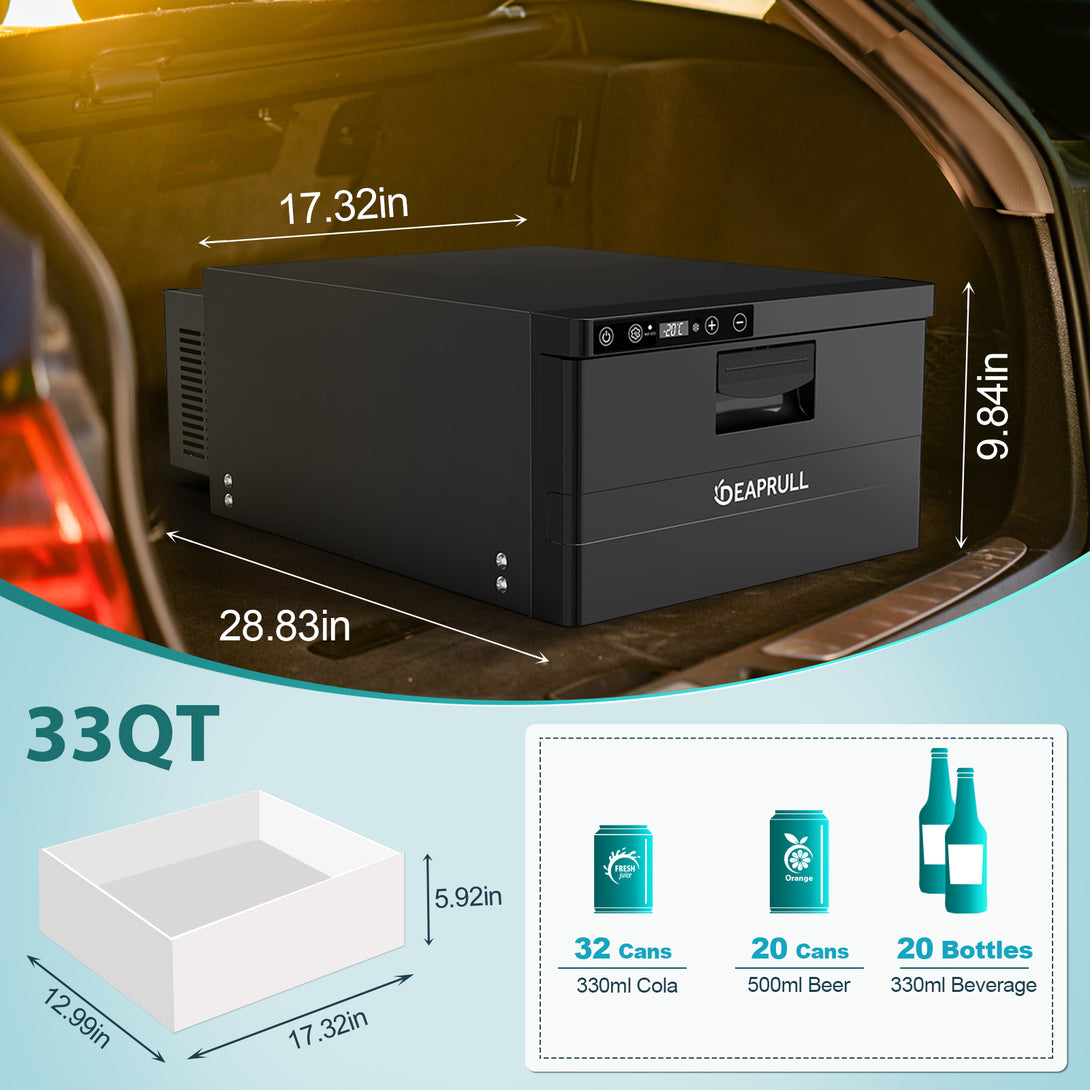 ๐ป31L(33QT) Drawer Refrigerator - Supports storing 32 cans of Coke, 20 cans of beer, or 20 bottles of beverage, perfect for RV life and camping. Enjoy ice drinks anytime and anywhere