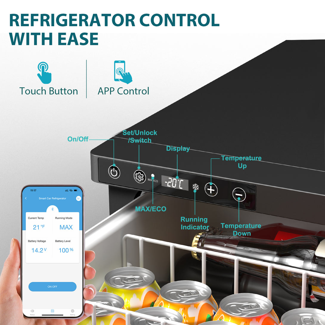 ๐ฒUser-Friendly Operation - The car Fridge has an LCD control panel, and supports APP to remote control. The internal LED lighting helps you find food easily, even in low-light conditions