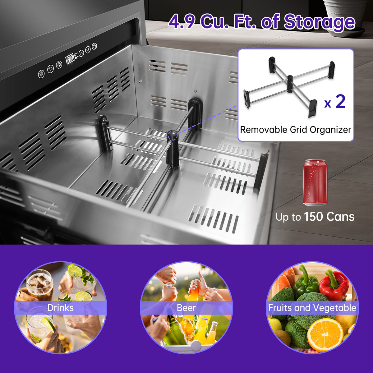 With a generous 4.9 cubic foot capacity, this cooler provides versatile storage solutions for all your needs – whether you're stocking up to 150 beverage cans, organizing craft beers, or keeping fruits and vegetables fresh. The innovative removable grid system lets you completely customize the interior layout, transforming the space to accommodate tall bottles, bulky items, or neatly arranged snacks with ease. Thoughtful design elements include reinforced shelves that can hold heavy glass bottles, corner storage for optimal space utilization, and smooth-gliding drawers that make every item accessible. The clear door design enhances visibility while the efficient cooling distribution ensures consistent temperature across every corner. Perfect for game days, outdoor gatherings, or kitchen supplementation, this space-adaptive storage solution combines smart organization with reliable performance.