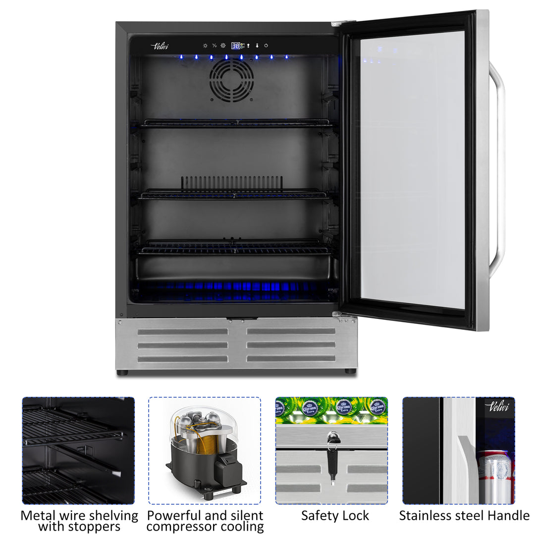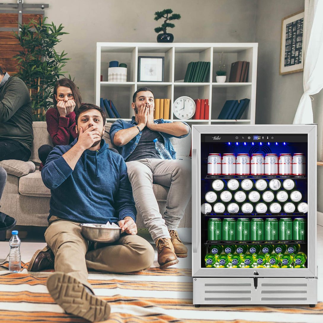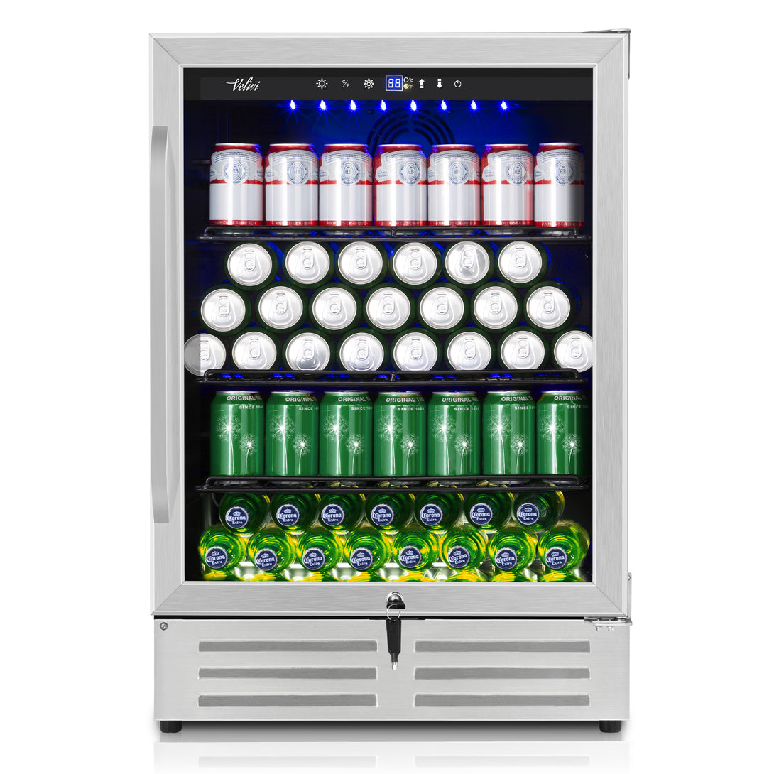 24 in. 210 (12 oz.) Can Built-in/Freestanding Beverage Cooler Fridge with Adjustable Shelves in Stainless Steel