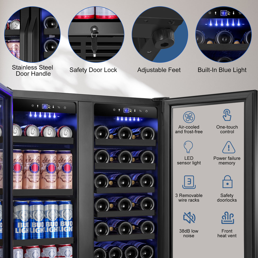 Set it and forget it - independent cooling zones auto-maintain the perfect temps for wine and drinks