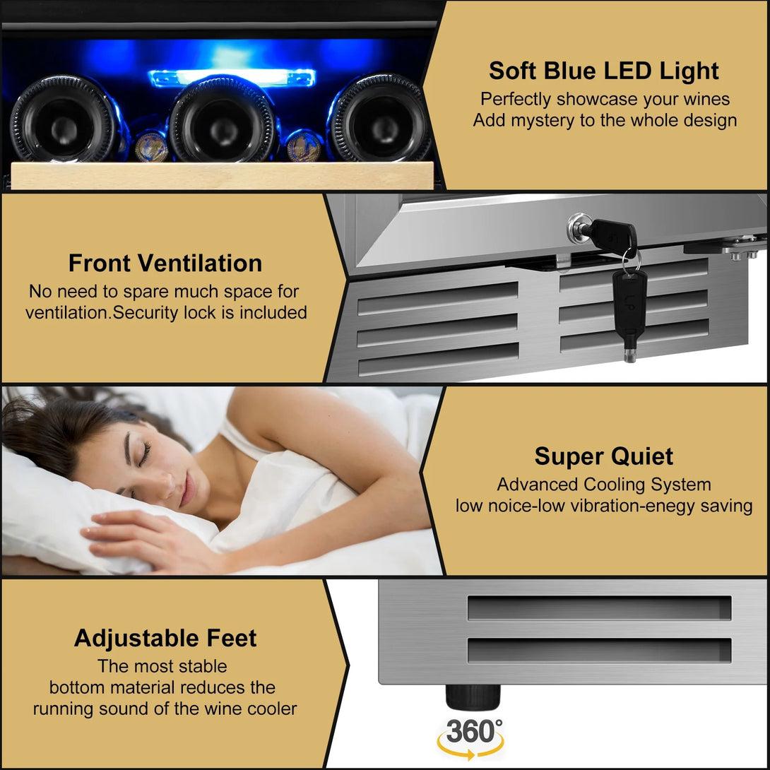 - Quiet And Energy Efficient Compressor-Enegy saving, the wine cooler is quiet when working , so you can enjoy your happy peaceful moment at home ,in office or anywhere.
