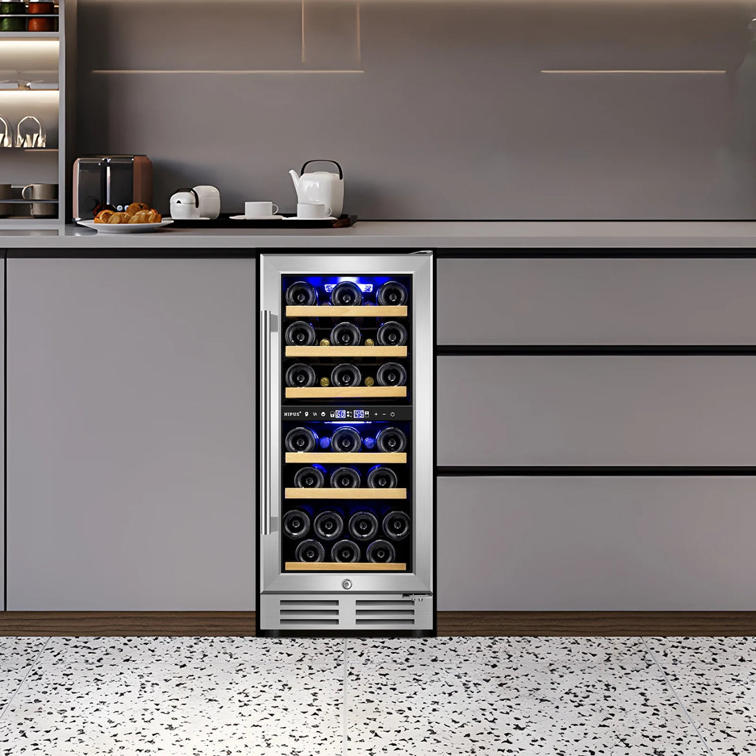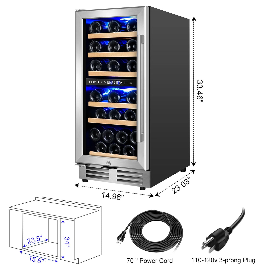 Nipus 15 Inch Wine Cooler Refrigerator,30 Bottle,Daul Zone,Low Noise Wine Fridge ,Built-in or Freestanding