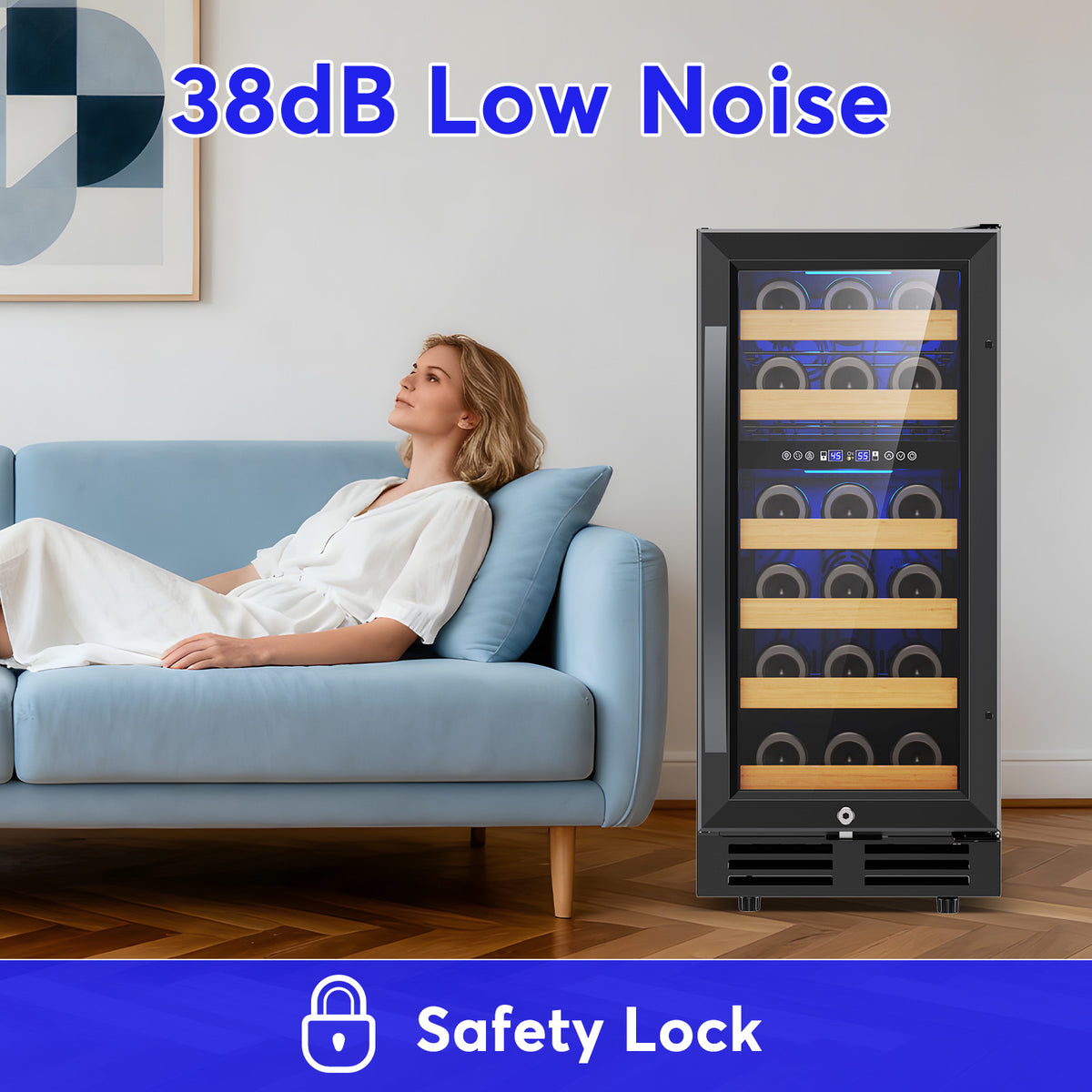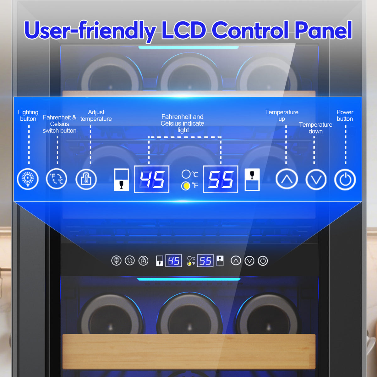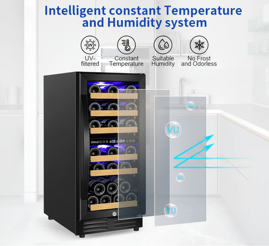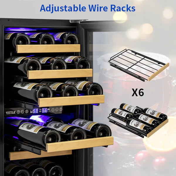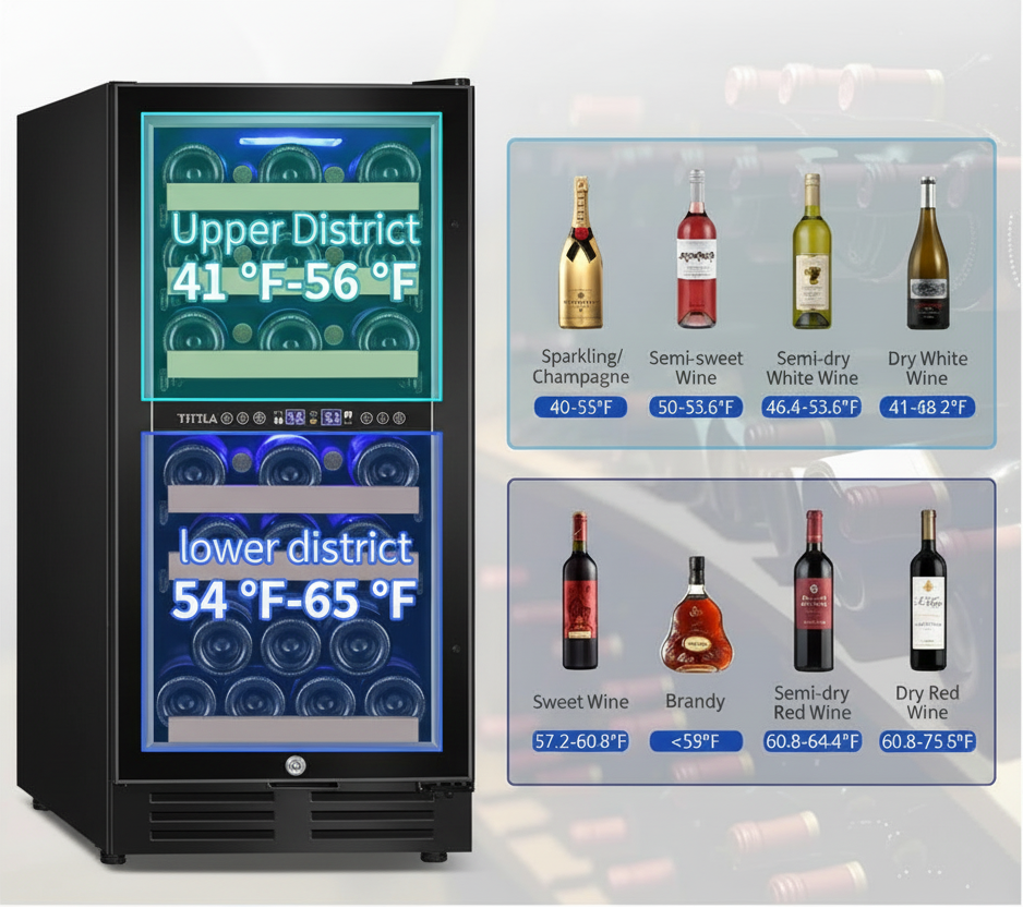 Dual Temperature Zones keep your wine collection perfectly preserved with precision climate control. The upper zone maintains 41–56°F for white wines and champagne, delivering crisp, refreshing flavors, while the lower zone holds 54–65°F for reds, preserving complex tannins and depth. Independent controls let you dial in exact temperatures for each section, ensuring every bottle reaches your glass at its ideal serving temperature without compromise. Advanced compressor technology minimizes vibration and noise, protecting delicate flavors while running whisper-quiet. This dual-zone design accommodates diverse wine preferences in a single unit, making it perfect for collectors and enthusiasts who appreciate variety. Energy-efficient cooling cycles maintain consistent humidity levels, preventing cork degradation and label damage. The precise temperature management extends bottle longevity, allowing your investment to age gracefully while maintaining optimal drinking conditions year-round.