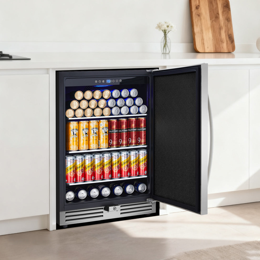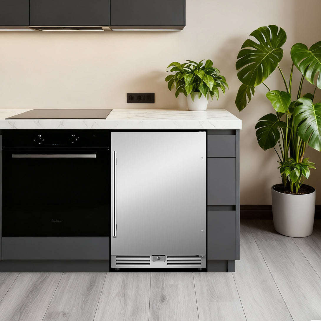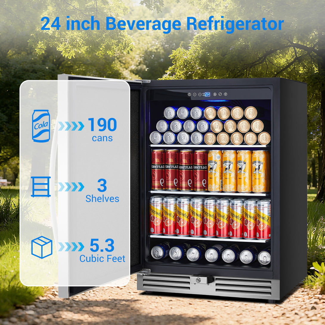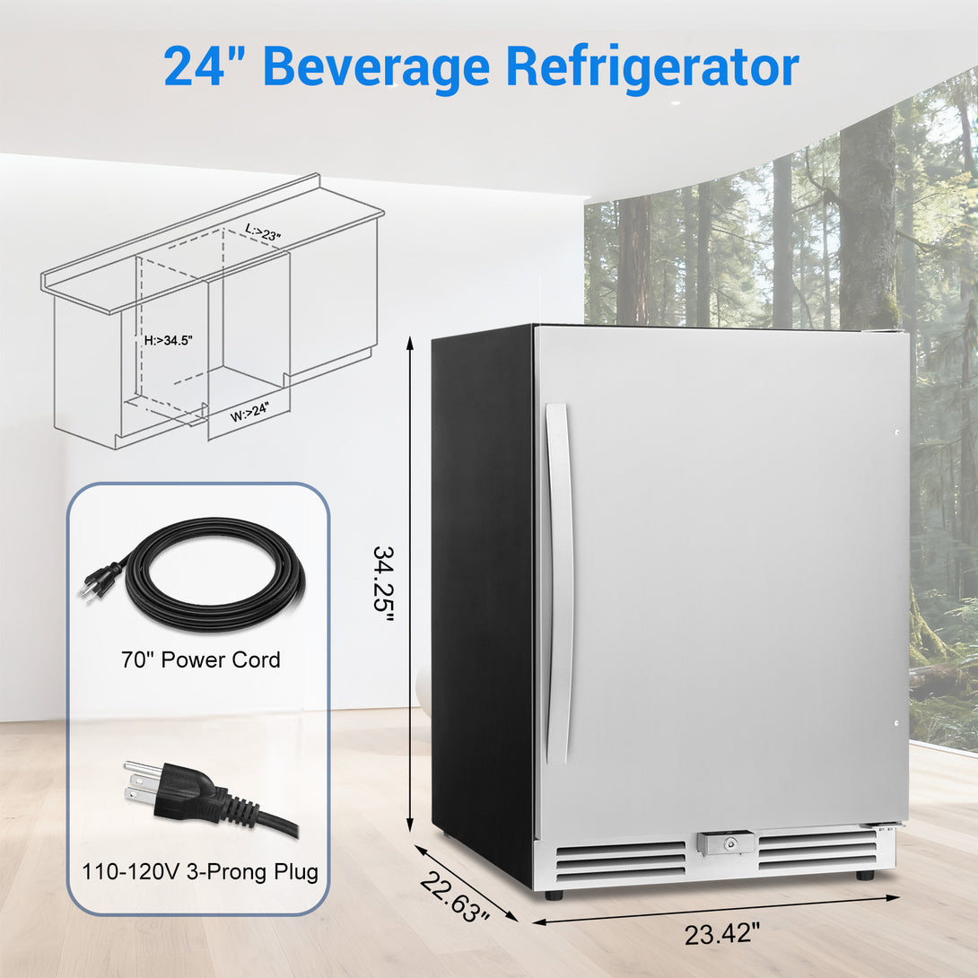 TITTLA 24-Inch Outdoor Beverage Refrigerator – Your Ultimate Drink CompanionNever be without a cold drink outdoors! The TITTLA 24-Inch Outdoor Beverage Refrigerator is built to be your go-to cooling solution, with an impressive capacity to hold up to 210 cans. Whether it’s beer, soda, or seltzers, every beverage stays perfectly chilled and ready to serve.Designed for total flexibility, this beverage cooler can be built into an outdoor kitchen or used as a freestanding unit—giving you the freedom to place it wherever it’s needed most.Featuring a durable stainless steel foam-insulated door, this refrigerator effectively locks out outdoor heat, maintaining a consistently cool interior while saving energy.With the ability to store up to 210 standard 12-oz cans, there’s plenty of room for all your favorite drinks. The adjustable thermostat allows you to set the ideal temperature between 37°F and 64°F, so every sip is as refreshing as the first.